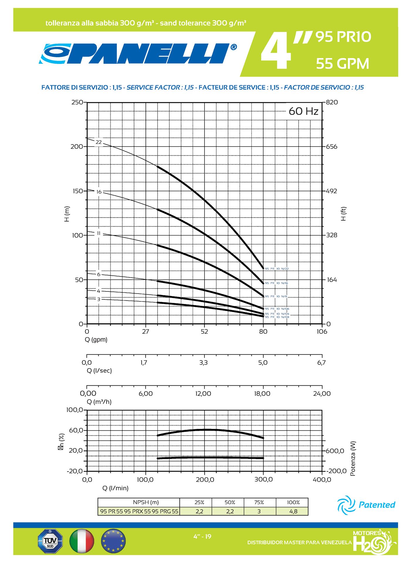 CUERPO SUMERGIBLE PANELLI 4" SERIE PR MOD. 95PR5516 55GPM 7,50HP 16ET 2"NPT NEMA4