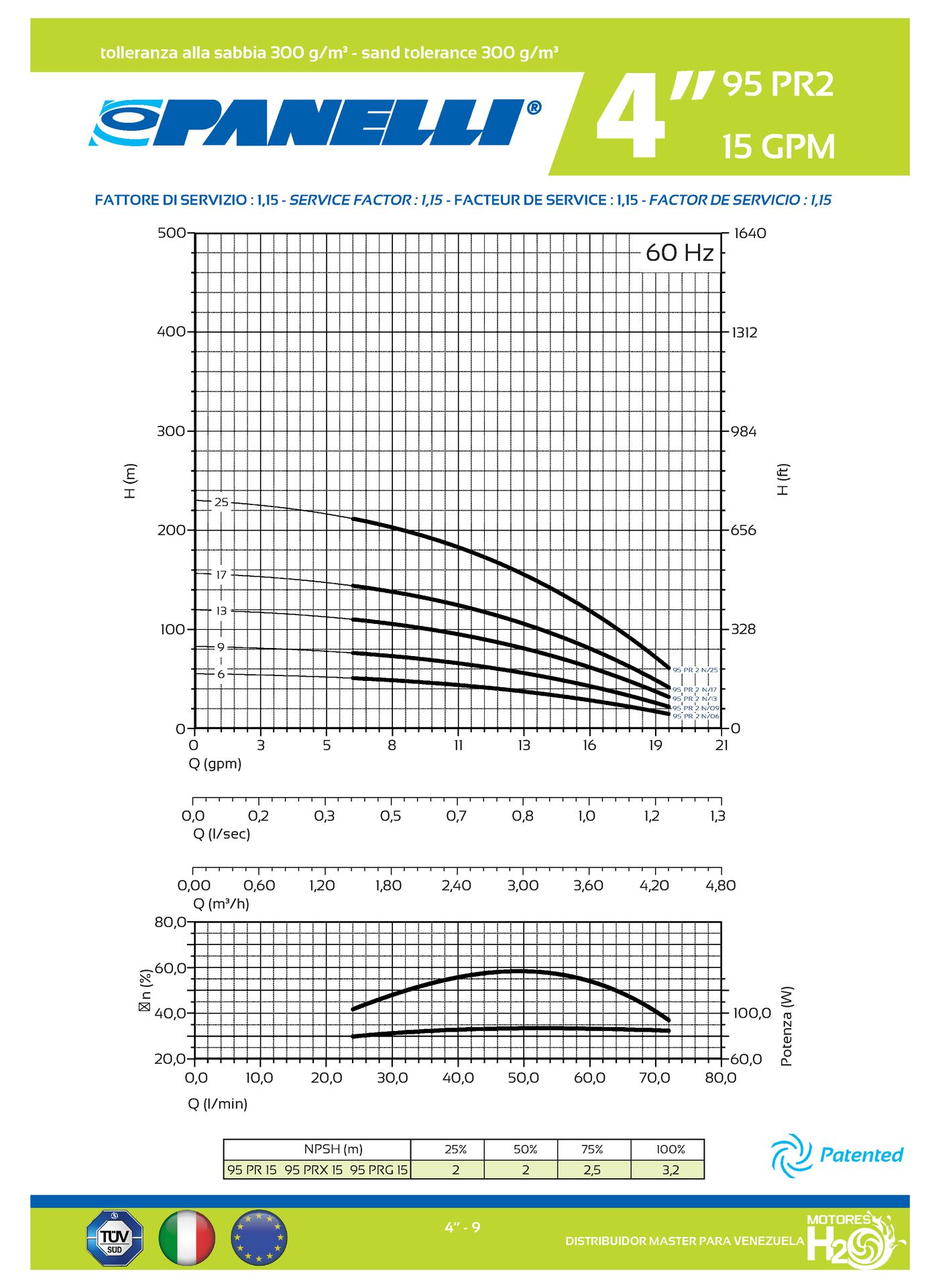 CUERPO SUMERGIBLE PANELLI 4" SERIE PR MOD. 95PR1506 15GPM 0,75HP 06ET 1-1/4"NPT NEMA4