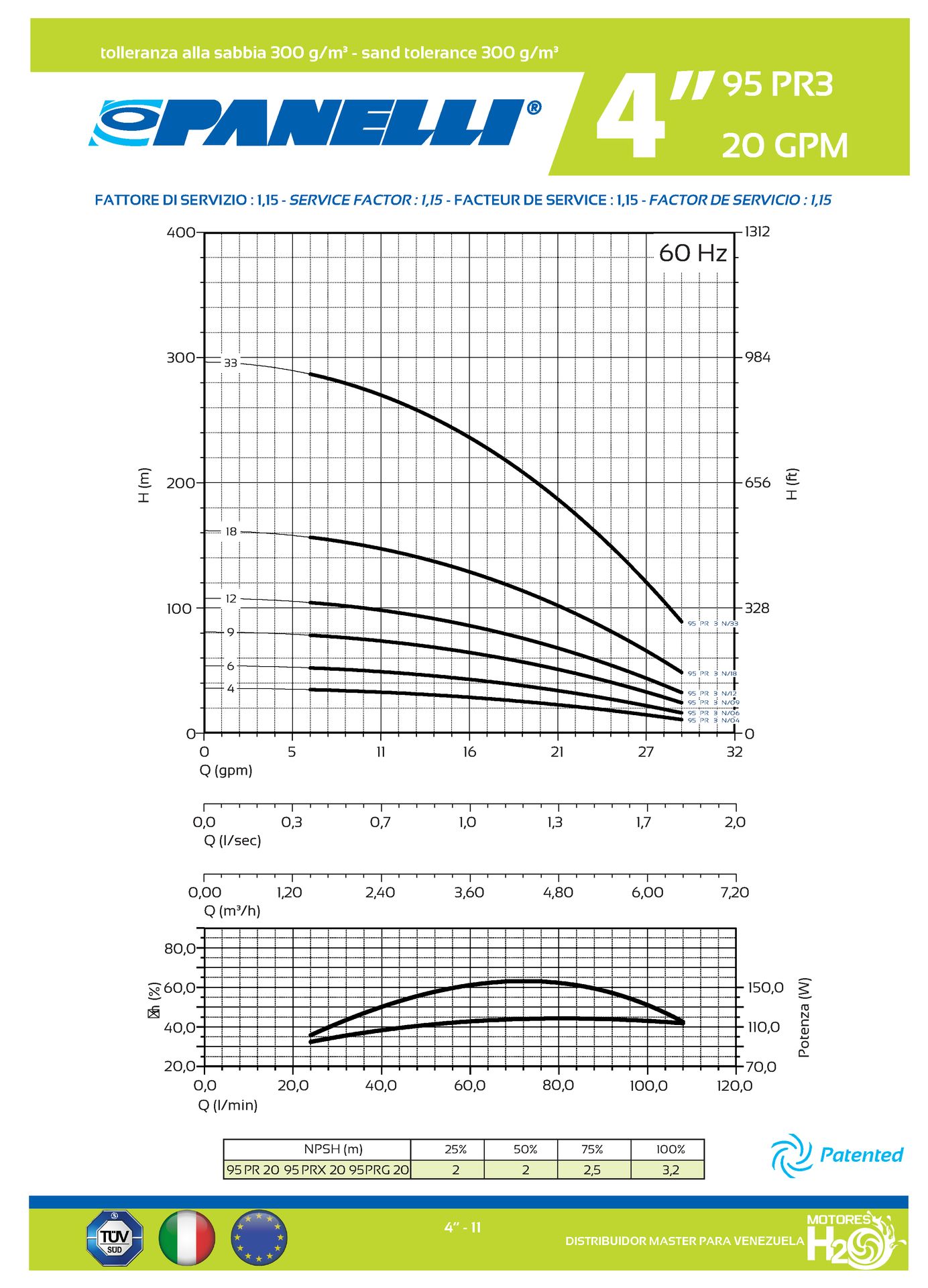 CUERPO SUMERGIBLE PANELLI 4" SERIE PR MOD. 95PR2012 20GPM 2,00HP 12ET 1-1/4"NPT NEMA4