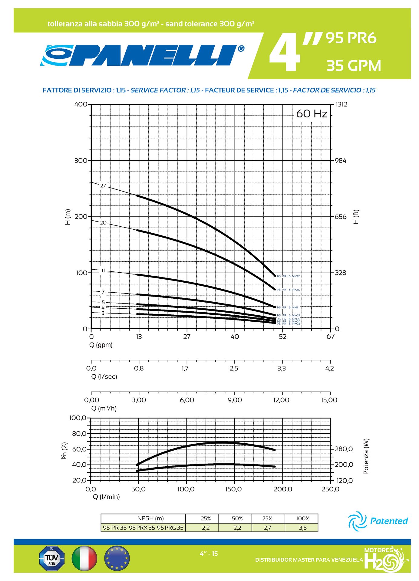 CUERPO SUMERGIBLE PANELLI 4" SERIE PR MOD. 95PR3505 35GPM 1,50HP 05ET 2"NPT NEMA4